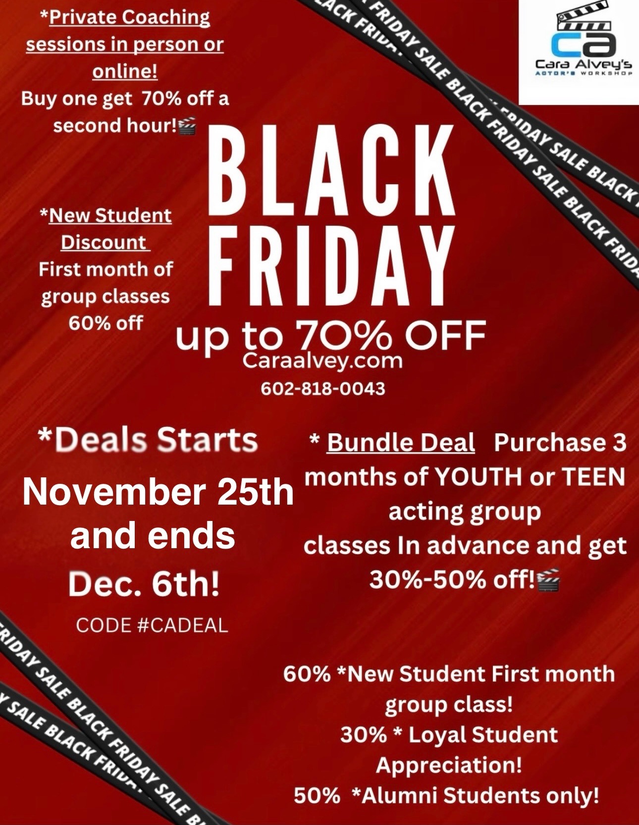 Tiffany May2025-02-27Trustindex verifies that the original source of the review is Google. My daughter loves Cara’s Acting Workshop. She always leaves class feeling accomplished and confident that she’s grown in her acting skills. Rosa-Valentina Reyes2025-02-11Trustindex verifies that the original source of the review is Google. Cara is a wonderful teacher! She is professional and made it easy and comfortable for someone new to the acting industry to join her classes. I learned a lot and definitely recommend! Kindra Bothwell2025-02-08Trustindex verifies that the original source of the review is Google. Cara Alvey’s Actors Workshop has been amazing for my teenage son. The classes have helped him become so much more confident and self-assured. He’s learned to express himself better and really found his true voice. It's been a great experience that has had a positive impact on him both as an actor and in his everyday life. We highly recommend! Kelsie Castro2024-08-01Trustindex verifies that the original source of the review is Google. Cara is such a fantastic acting coach and teacher. She is very caring, calm, and knowledgeable when working with actors of all ages and abilities. My daughters have taken many acting classes with Cara and one-on-one trainings, which have helped them in their acting journey. I highly recommend taking classes with Cara Alvey! Mark Vuncannon2024-06-12Trustindex verifies that the original source of the review is Google. Cara is a truly gifted Acting Coach! I have several years of experience with multiple styles of training, and her approach is excellent at whatever age or level you’re at. Cara brings a very thoughtful, intuitive insight employing practical techniques that will have an immediate impact on your craft. I am very grateful to have her in my corner for this leg of my journey! Take her classes you won’t regret it. Avery2024-06-09Trustindex verifies that the original source of the review is Google. This acting camp was probably one of the best things I’ve ever done. I loved meeting new people and learning what goes on behind the scenes! It was great working with Miss Cara and she worked really hard to put this all together!